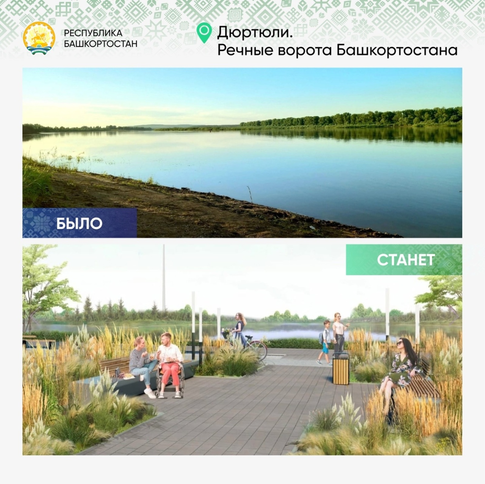 «В Дюртюлях проект хороший, продуманный. Главное, согласованный с жителями. Благоустройство затронет саму набережную и пешеходный маршрут к парку Матросова, главную городскую площадь, сквер Мусина – до памятника бойцам красногвардейского отряда Чеверева. Вокруг памятника появятся зоны отдыха – пирсы у воды, прогулочные и велосипедные дорожки. Шумные площадки, спортивная, детская и событийная, будут чуть дальше.