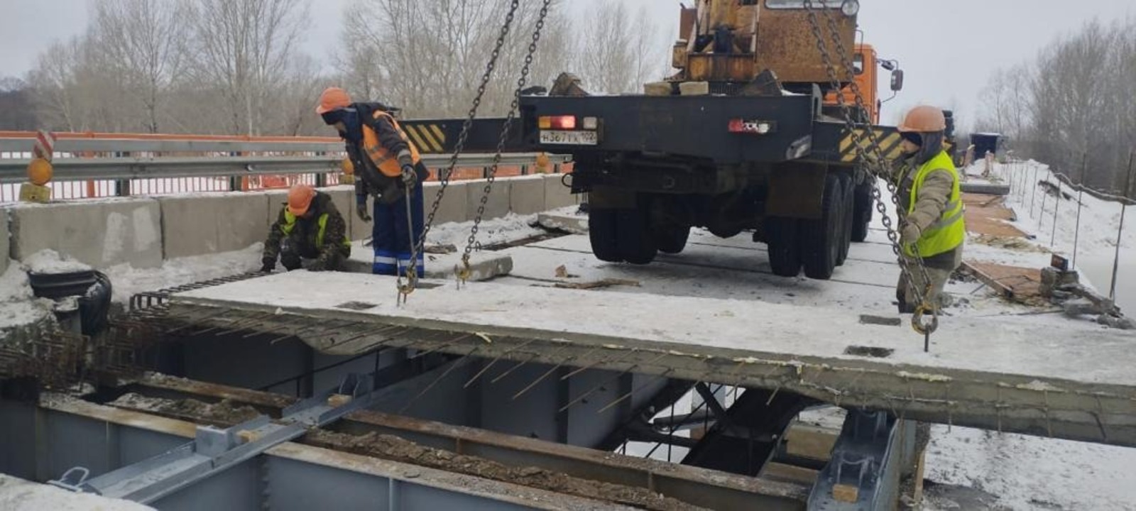 Один из ключевых объектов — мост через Белую в Гафурийском районе на 36-м километре автодороги Толбазы-Красноусольский, протяженностью 406 м. Его ремонт ведется с 2021 года. На данный момент мостовики завершили работы по правой полосе проезжей части. По левой разобрано старое покрытие, заменены плиты проезжей части, укреплены конусы.