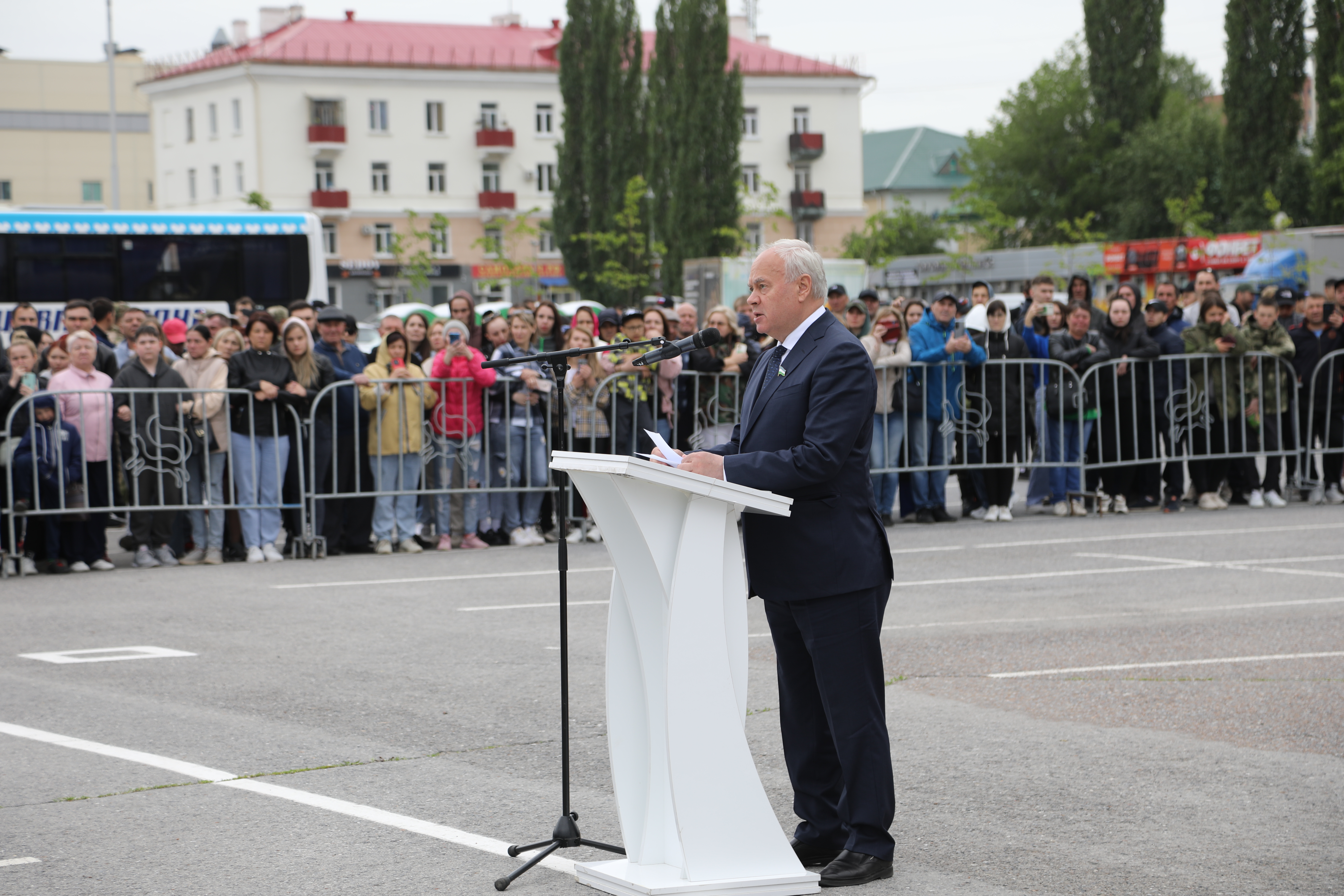 Проводить и напутствовать бойцов прибыли Председатель Государственного Собрания – Курултая Республики Башкортостан Константин Толкачев и глава Администрации ГО г. Уфа Ратмир Мавлиев.