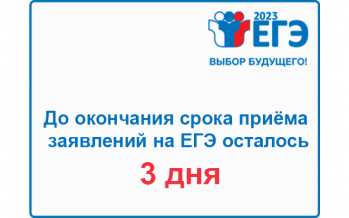 До окончания срока приёма заявлений на ЕГЭ-2023 осталось 3 дня!