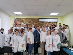 Главный врач Абдуллин М.Ф., старшая медсестра хирургического отделения Давлетшина Е.И. и ведущий специалист отдела кадров Волкова Е.В. рассказали ребятам о структуре и особенностях работы в ЦРБ, поликлинике, имеющихся вакансиях, значении целевого договора и мерах социальной и индивидуальной поддержки.