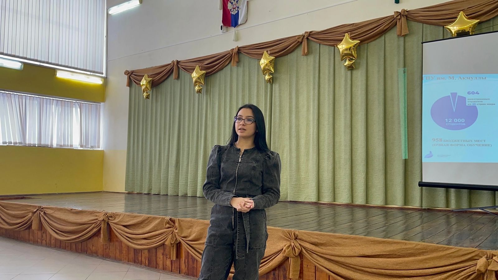 Ответственная по трудоустройству Колледжа БГПУ им. М.Акмуллы ЛуизаЗайнуллина выступила перед учащимися с презентацией Акмуллинского колледжа, рассказала о его специальностях, условиях поступления и обучения, а также о перспективах развития современных профессий.