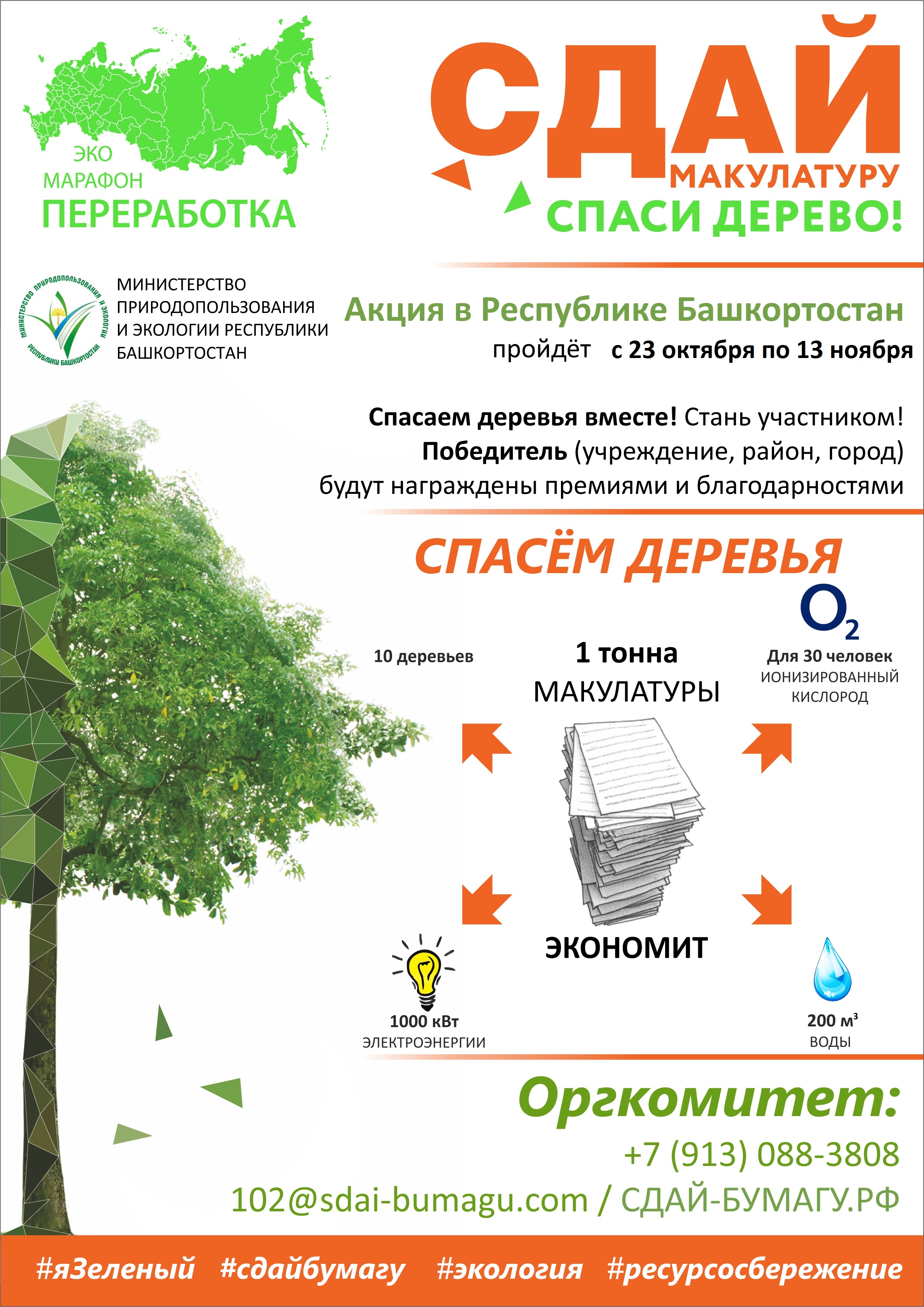 С 23 октября по 13 ноября 2023 года пройдет Всероссийский Эко-марафон ПЕРЕРАБОТКА «Сдай макулатуру – спаси дерево».