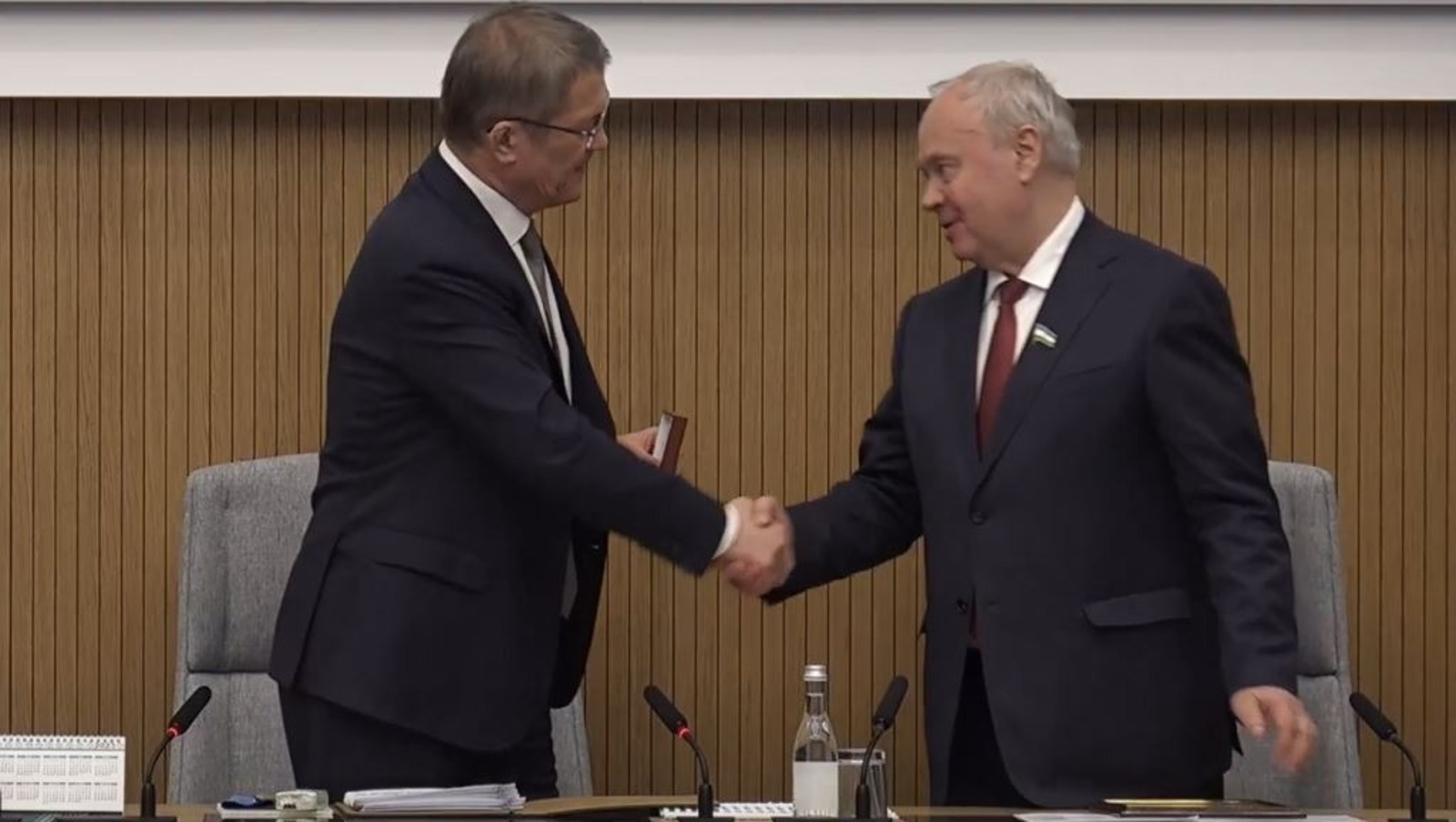 — Вы верой и правдой служите нашей республике. Мы благодарим вас за это. Спасибо за эффективную организацию работы Госсобрания, за умелое управление нашим парламентом, спасибо, что парламент все эти непростые годы выступал нашим союзником, партнером. Так держать! — сказал Радий Хабиров Константину Толкачеву.