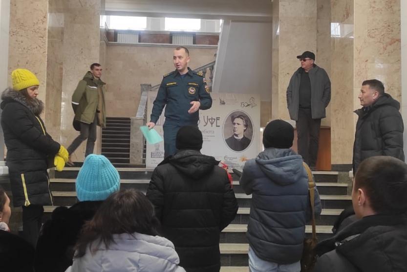 Следующим этапом визита стало проведение инструктажа для работников музея. Ведущий инженер ОПП МБУ УПО г. Уфы по Кировскому району Ильдус Шаймухаметов подробно разъяснил собравшимся основные правила пожарной безопасности, которые необходимо соблюдать на объектах с массовым пребыванием людей и принципы действия в условия возникновения ЧС.