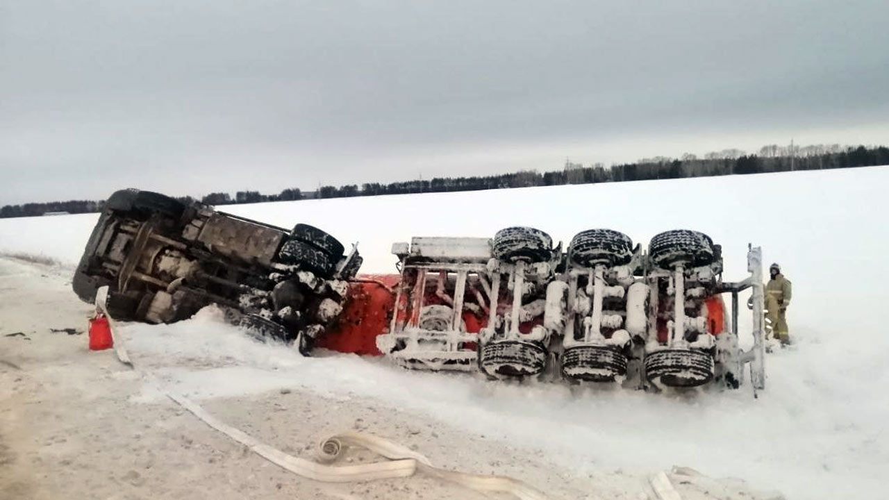 В Краснокамском районе Башкирии бензовоз опрокинулся в кювет
