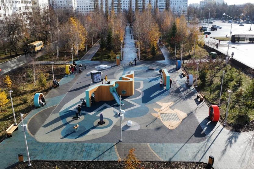 Уфимцев ждут аккуратные пешеходные дорожки и причудливые малые архитектурные формы. Особое внимание уделили хоккейной концепции: по задумке, цветовые решения отвечают ледовой тематике. Один из ярких штрихов - скамейки в форме колец, которые напоминают - олимпийские. К тому же, по вечерам сквер играет особыми красками в свете фонарей.