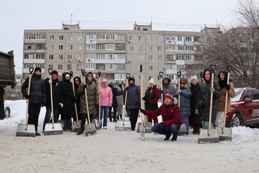 Сегодня уже не так солнечно, как вчера, но лопатами сегодня поработали так же ритмично.