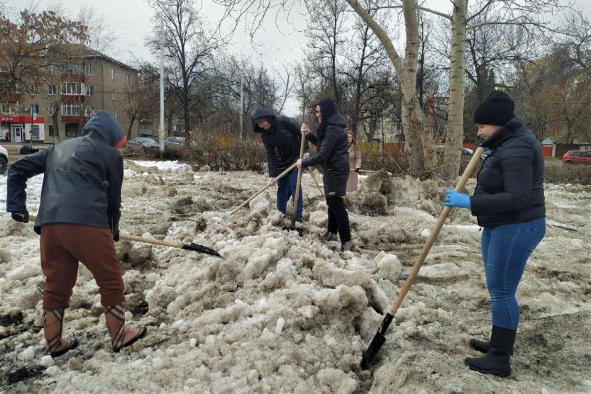 В санитарной пятнице приняли участие сотни сотрудников предприятий, учреждений и организаций по всему району. Вместе они ворошили снег, подметали дорожки, собирали и грузили смёт и бытовой мусор.