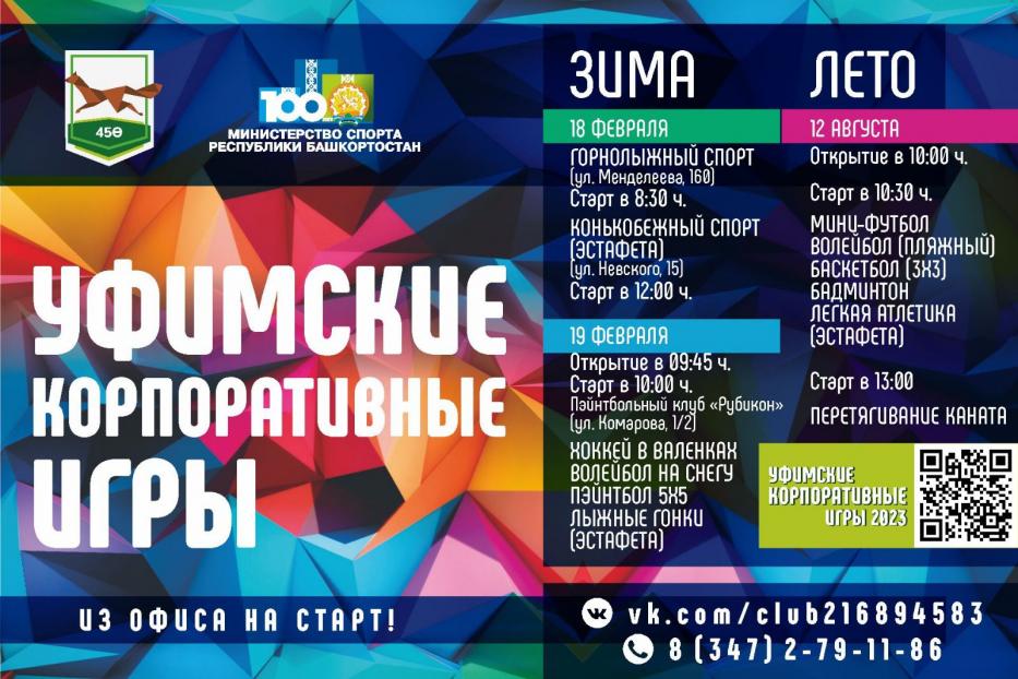 18 и 19 февраля в Уфе пройдут X Уфимские зимние корпоративные игры. Мероприятие посвящено 100-летнему юбилею спортивной отрасли страны.