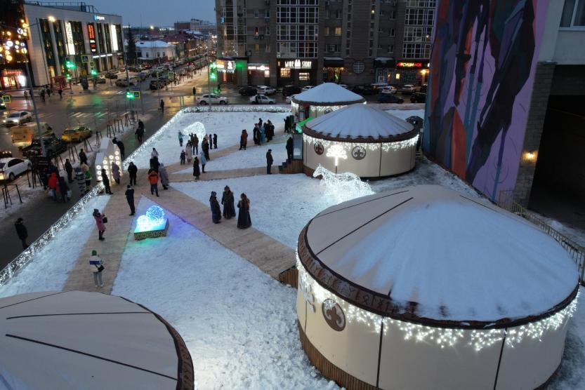 Уникальный комплекс открылся на пересечении улиц Мустая Карима и Чернышевского 24 декабря. Этно-деревня - проект развития исторического центра города Уфы, который реализован на федеральный грант в рамках формирования туристического кода. Она наполнена юртами, арт-объектом «Башкирский чай», световыми композициям. Объект построен к 450-летию столицы.