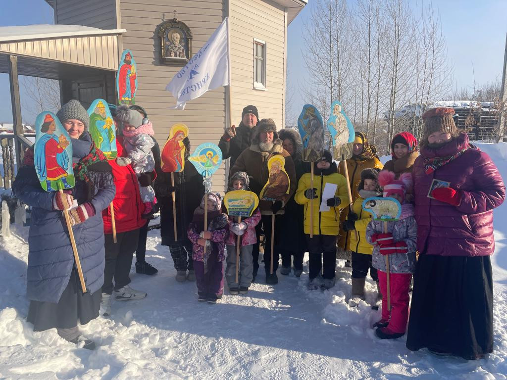 8 января 2023 г. по благословению настоятеля Князь-Владимирского храма д. Шмидтово Уфимского района иерея Анатолия Киселева педагоги и учащиеся приходской Воскресной школы отправились колядовать.