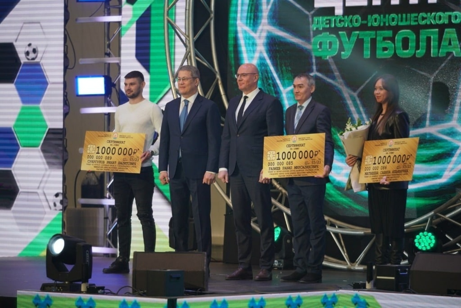 Радий Хабиров вручил тренеру из Ишимбая сертификат номиналом 1 миллион рублей