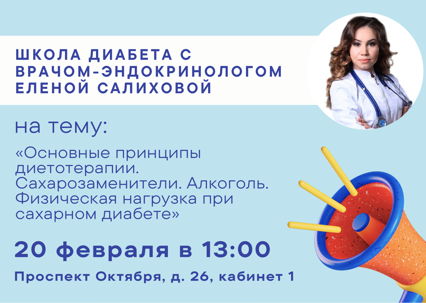 Анонс Школы диабета с врачом-эндокринологом Еленой Салиховой