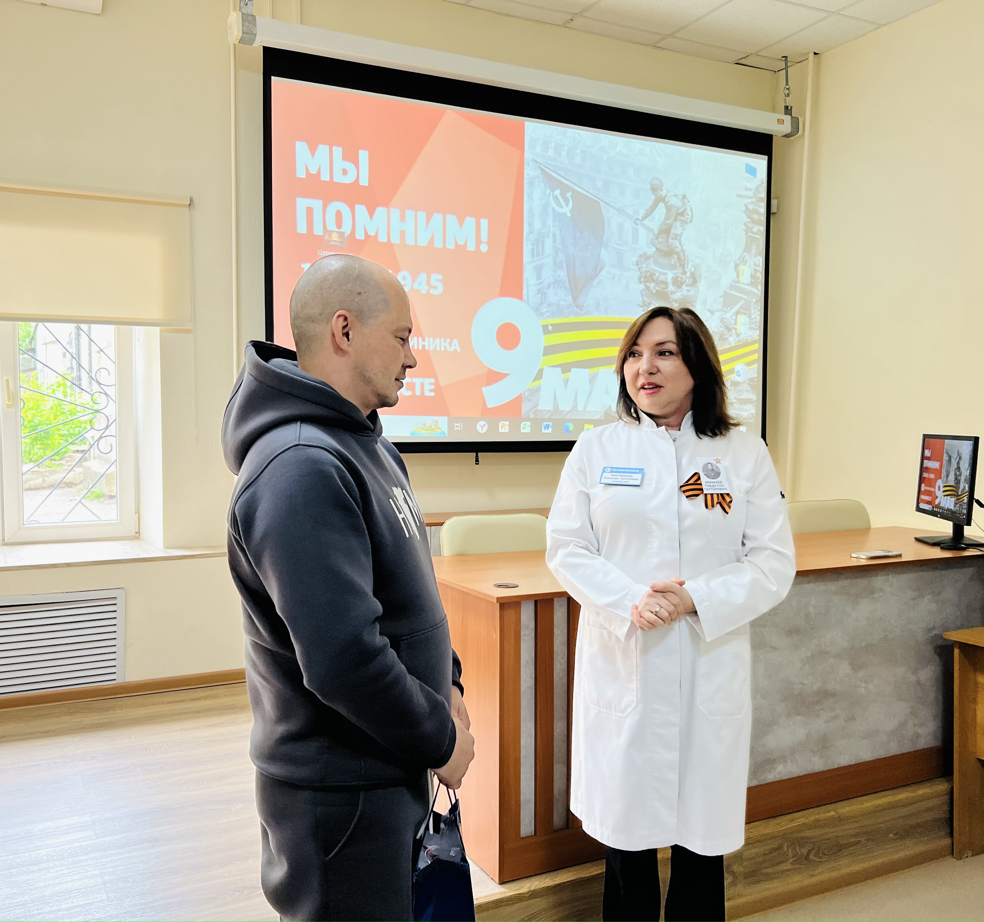 В честь Дня Победы мы поздравили нашего сотрудника, который находился в зоне специальной военной операции, и все семьи нашей поликлиники, в которых служат в СВО.