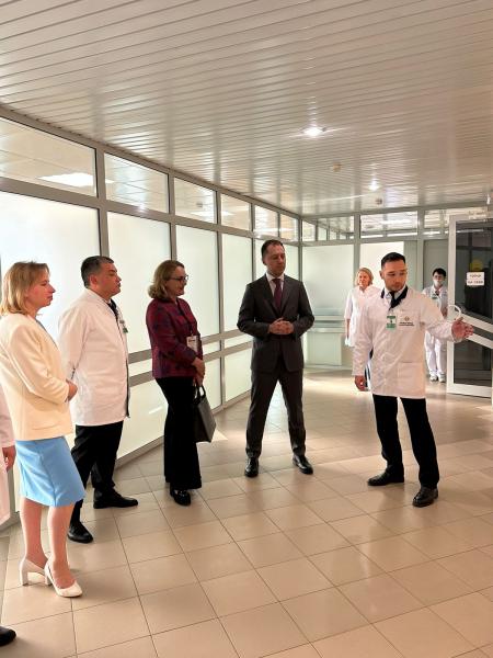 Почетные гости ознакомились с организацией работы Централизованной клинико-диагностической лаборатории. Обсудили возможные перспективы расширения сотрудничества между лечебными учреждениями.