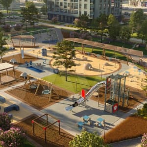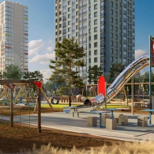 Возле каждого дома имеются детские площадки с безопасным покрытием.