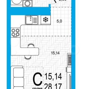 - Жилая площадь: 15.1 м²