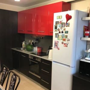 Мебель, кухонный гарнитур и стиральная машинка остаются. Имеются огромная кухня и гардеробная с большим шкафом-купе. Санузел совмещенный, полностью из качественной керамической плитки.