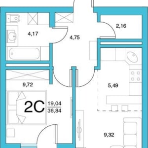 - Общая площадь: 36.8 м²