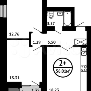 - Общая площадь: 56 м²