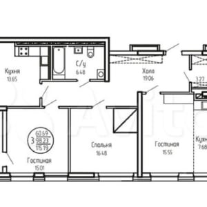 - Жилая площадь: 60.7 м²