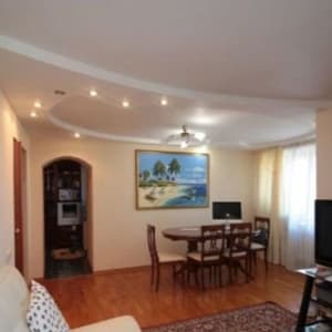 Квартира представляет из себя: просторная кухня - 9 кв.м, гостиная площадью 29,2 кв. м, спальня1 площадью 17,0 кв. м, спальня2 площадью 13,9 кв.м, санузел-7 кв.м. Потолки выровненные, межкомнатные двери итальянские. Комнаты все изолированные. В квартире сделан евроремонт в классическом стиле из дорогих материалов.
