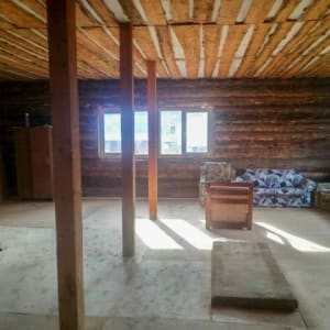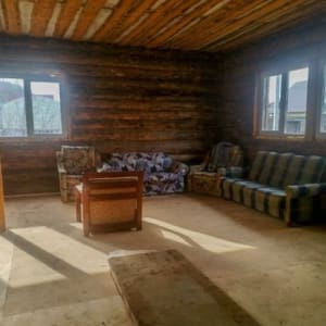 -Дом 2 этажа, 200 м2 ( 100 по первому и 2 этаж мансардный с очень высокой крышей) материал бревно. Плюс есть пристрой около 70 м2 в котором планировалась баня, материал - брус. В собственности.