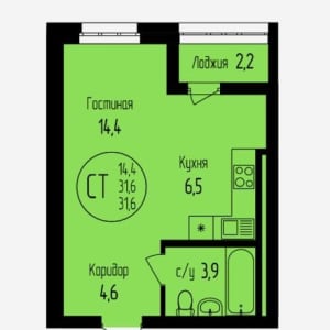 - Жилая площадь: 14.4 м²