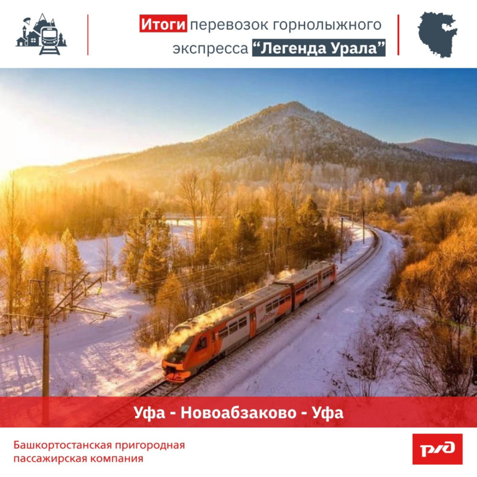 «Легенда Урала» – совместный транспортный проект Куйбышевской железной дороги, АО «Башкортостанская ППК» и правительства Республики Башкортостан. Туристический поезд был запущен в 2017 году в качестве сезонного предложения для любителей зимних видов спорта и быстро завоевал популярность среди туристов.