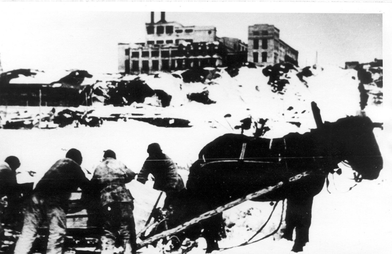 Представленная фотография сделана на реке Белой в ноябре-декабре 1936 года, накануне пуска ТЭЦ. Известная старшему поколению столовая № 1 действовала с 16 июля 1932 года и находилась по улице Промысловой (напротив бывшего Дома пионеров). Для хранения продуктов привозили и складировали лёд, который присыпали опилками.