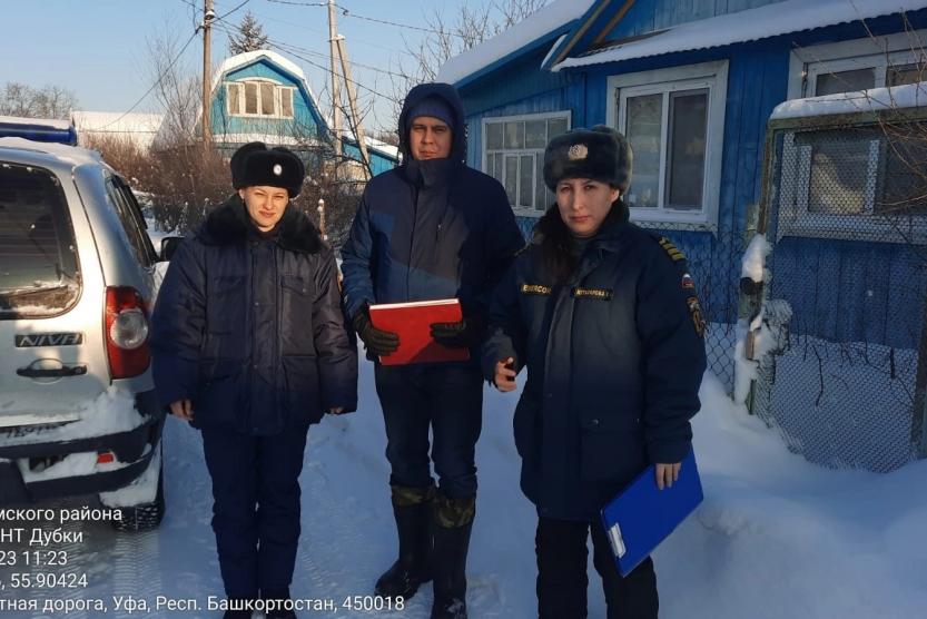 Для того,чтобы напомнить жителям лично, в Демском районе в дни новогодних каникул проходят профилактические рейды. Сегодня, 7 января, рейдующие посетили СНТ «Дубки» Они обследовали участки с постоянно проживающими жителями, провели инструктажи и вручили им памятки.