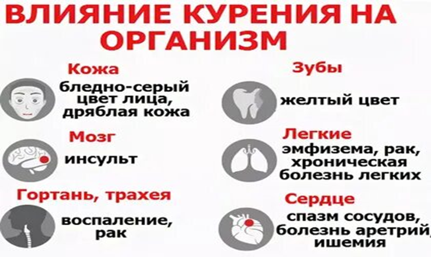 Курение наносит вред организму и приводит к заболеваниям различных органов и систем.